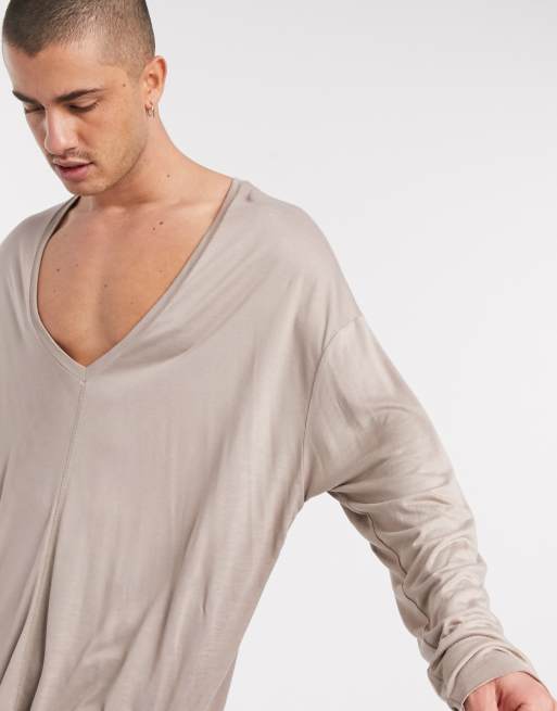 Deep v neck long sleeve shirt hot sale