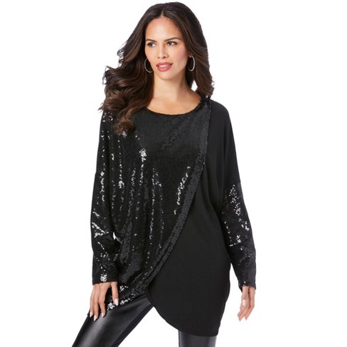 Womens plus size sequin tops hot sale