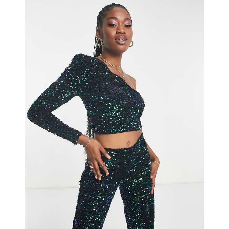 Womens sequin crop top hot sale