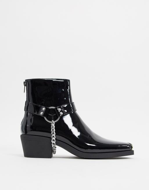 Asos design cuban heel western chelsea boots in black leather with buckle detail hot sale