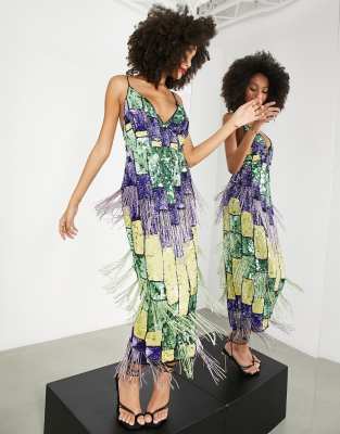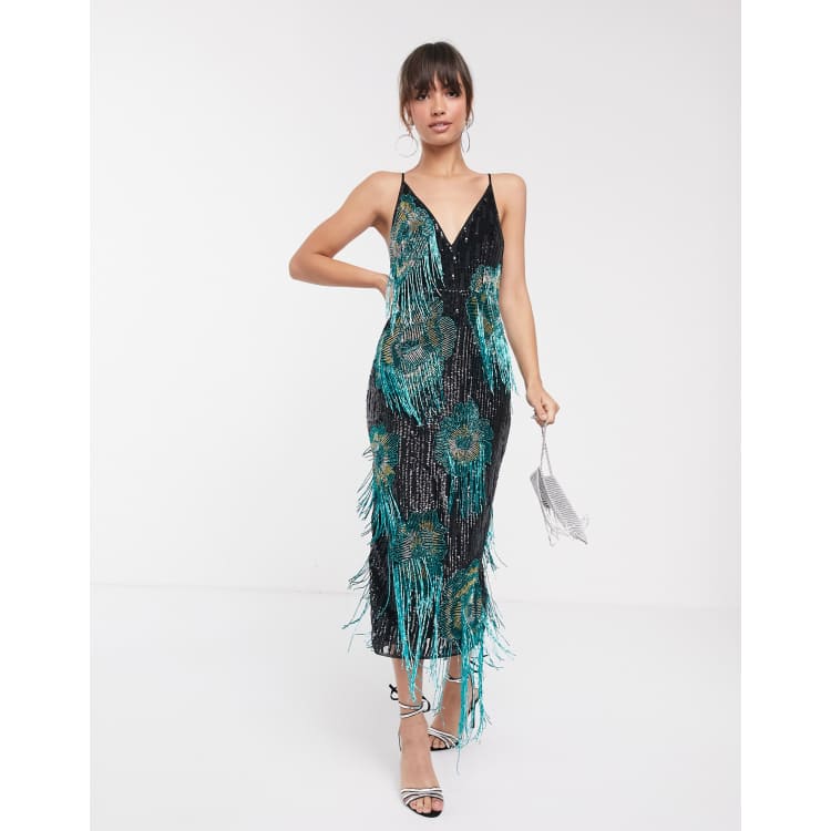Asos edition starburst midi dress with fringe hot sale