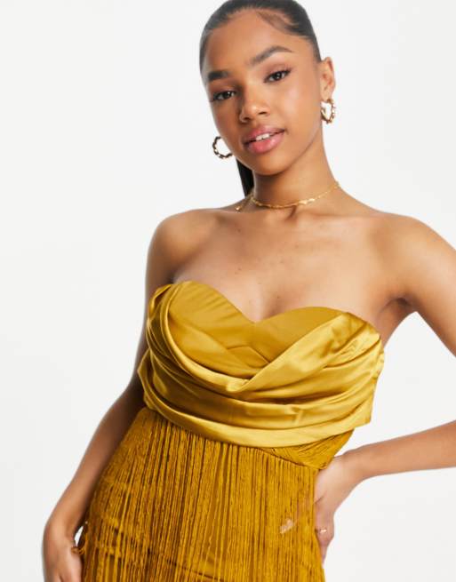 Asos yellow fringe dress hot sale