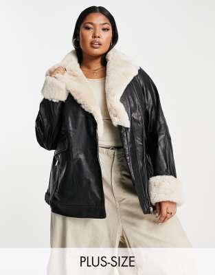 Black contrast faux fur aviator jacket hot sale