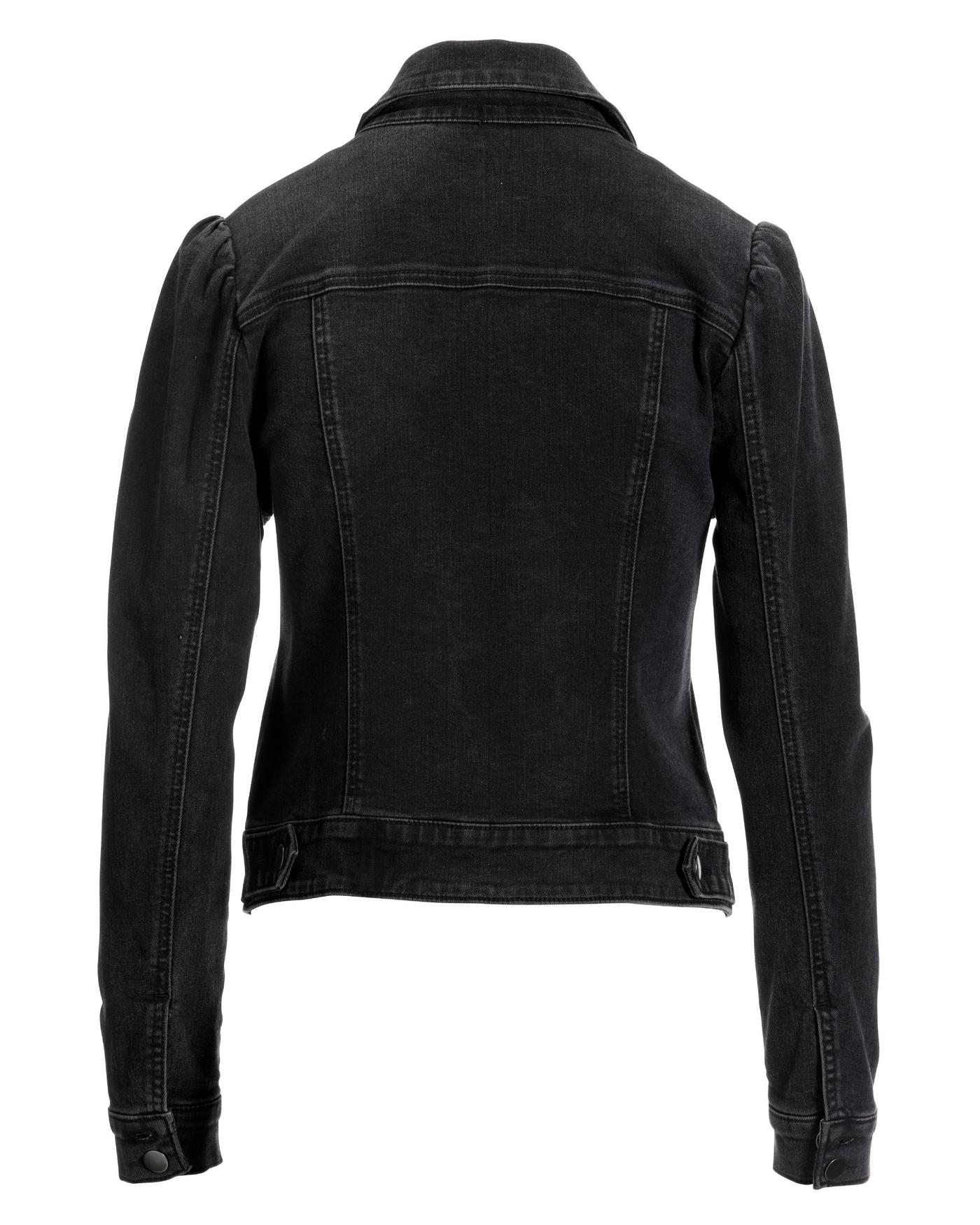 Black denim jacket puff sleeve hot sale