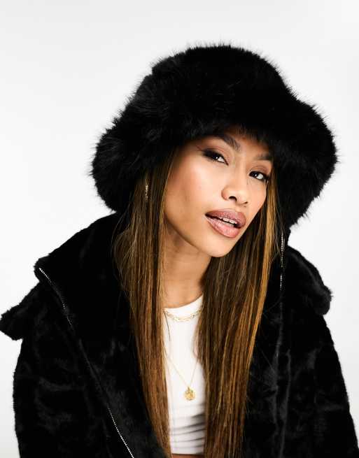 Black faux fur bucket hat hot sale