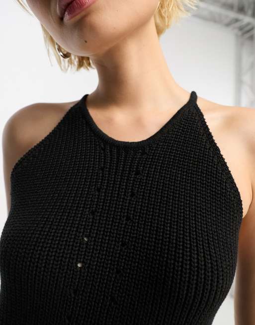 Black knit halter top hot sale