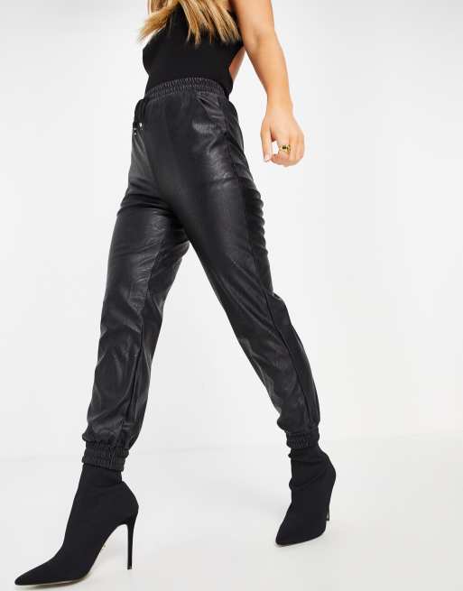 Black pu joggers hot sale