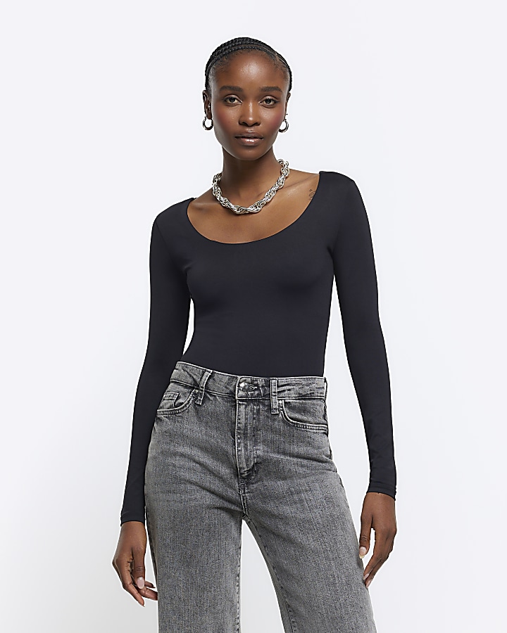 Black scoop neck bodysuit hot sale