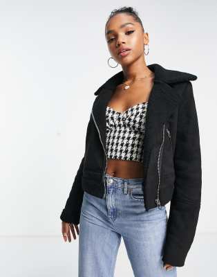Black suede aviator jacket hot sale