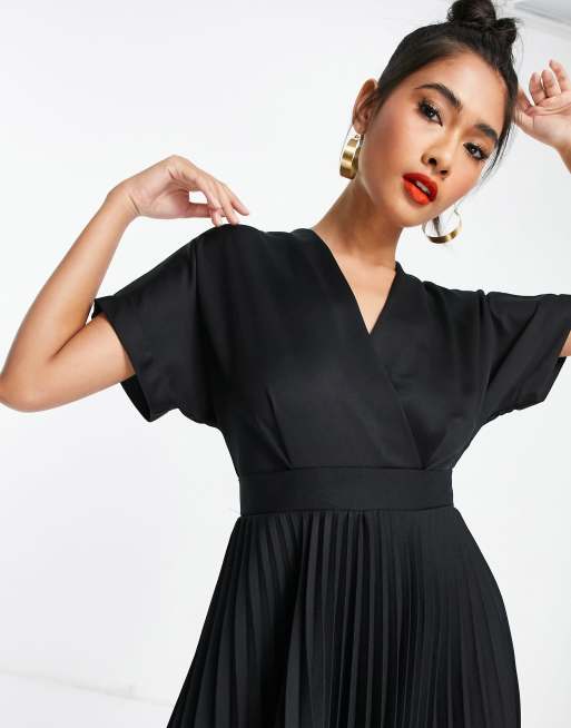 Black wrap skater dress hot sale