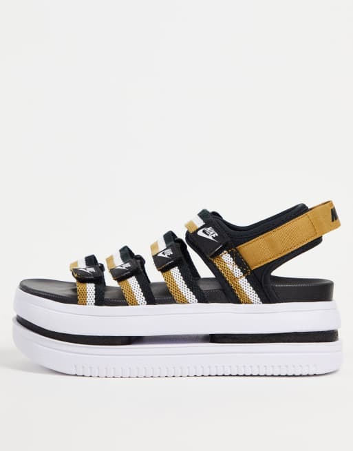 Black and gold nike sandals hot sale
